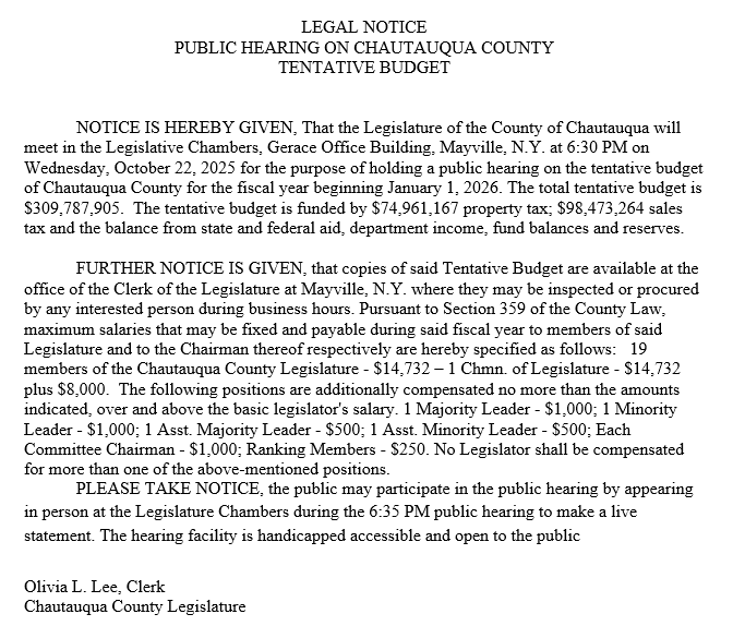 All Legislature Committee meetings as well as the full Legislature meetings are in-person open meetings and will be held in the Legislature Chambers on the third floor of the Gerace Office building.